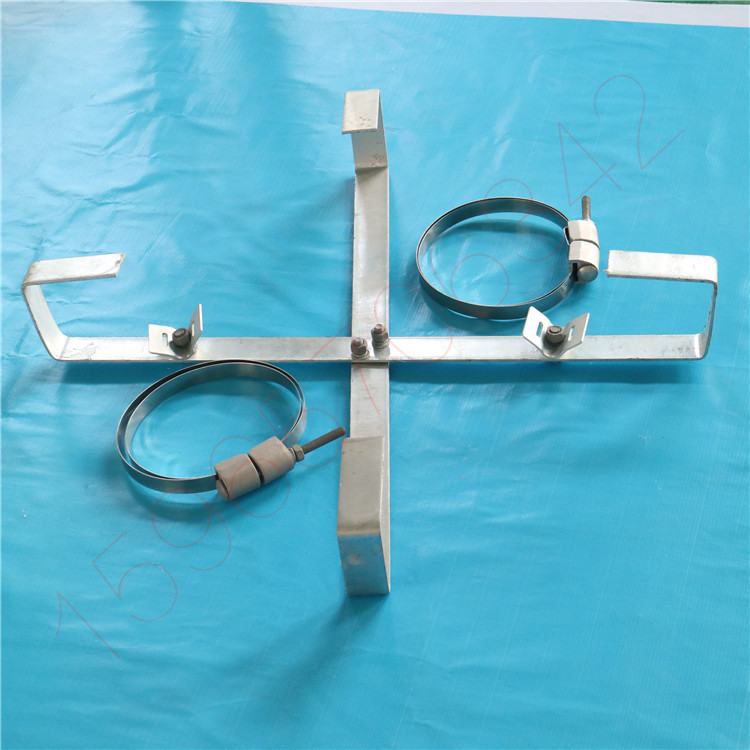 1.其余的电线杆架通过两套动力钢带箍固定在电线杆上;